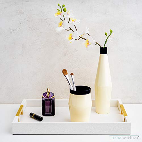 Modern Elegant 18 X12 Rectangle White Glossy Shagreen Decorative Ottoman Coffee Table Perfume Living Room Kitchen Serving Tray With Gold Polished Metal Handles By Home Redefined For All Occasion Walmart Com
