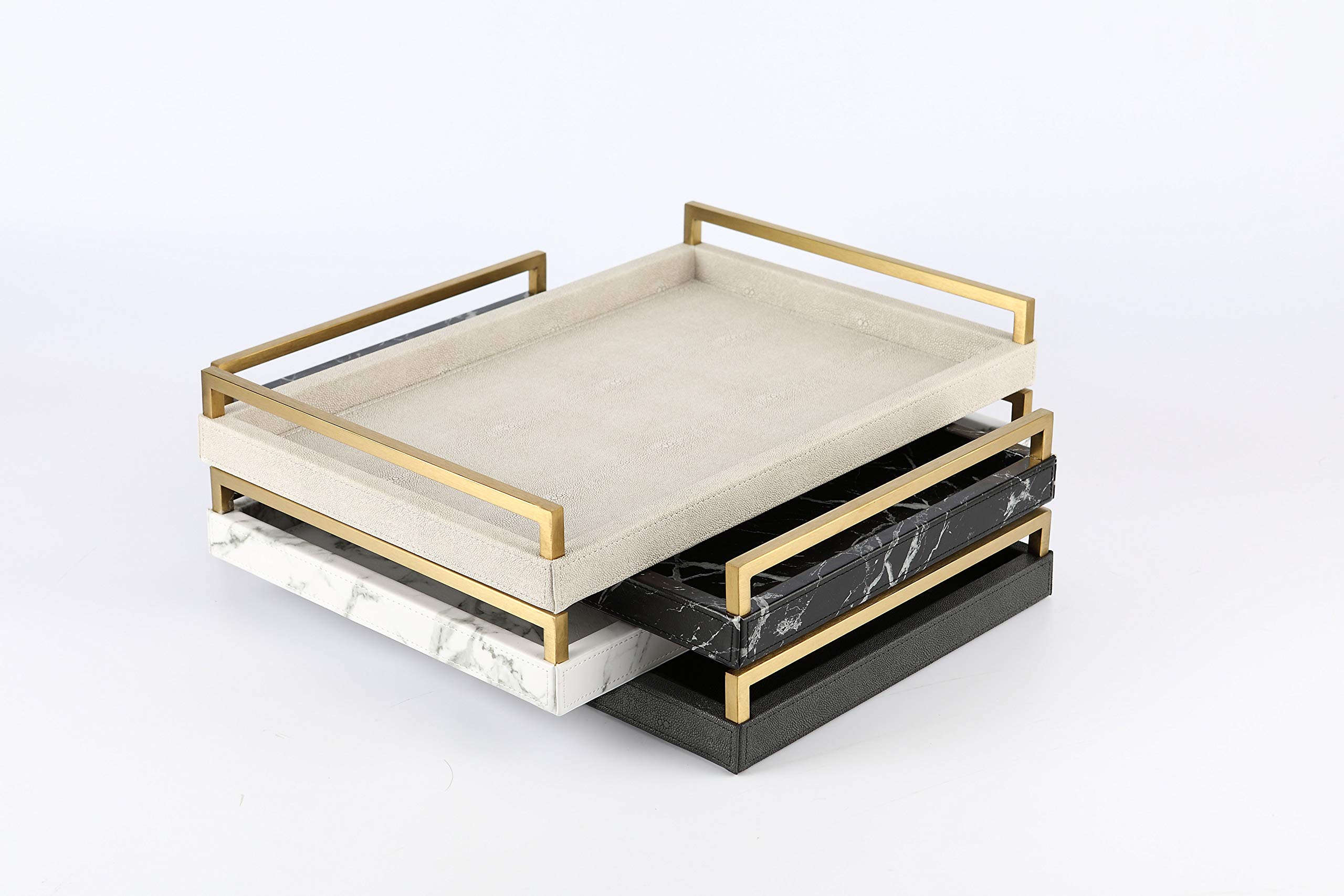 WV Ivory Faux Shagreen Decorative Tray PU Leather with Brushed Gold Stainless Steel Handle for Coffee Table Ottoman Console Table Ivory. Accented with a mixture of shagreen pen shell and bronze-patina brass this piece comes with all game parts in a v.